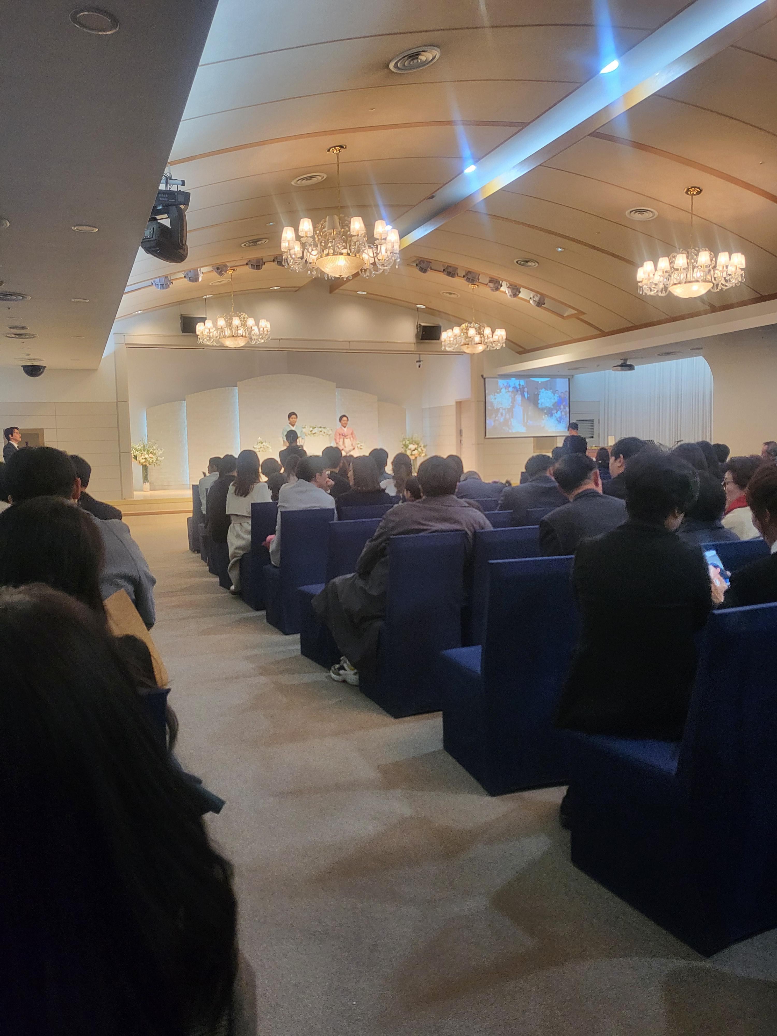 예식 시간은 총 <16분정도> 걸렸고, 앞뒤로 식이 없어서 좋았다. 내가 하객으로 간 예식시간은 토요일 저녁 6시 30분!!! 주차장도 복잡하지 않았다.