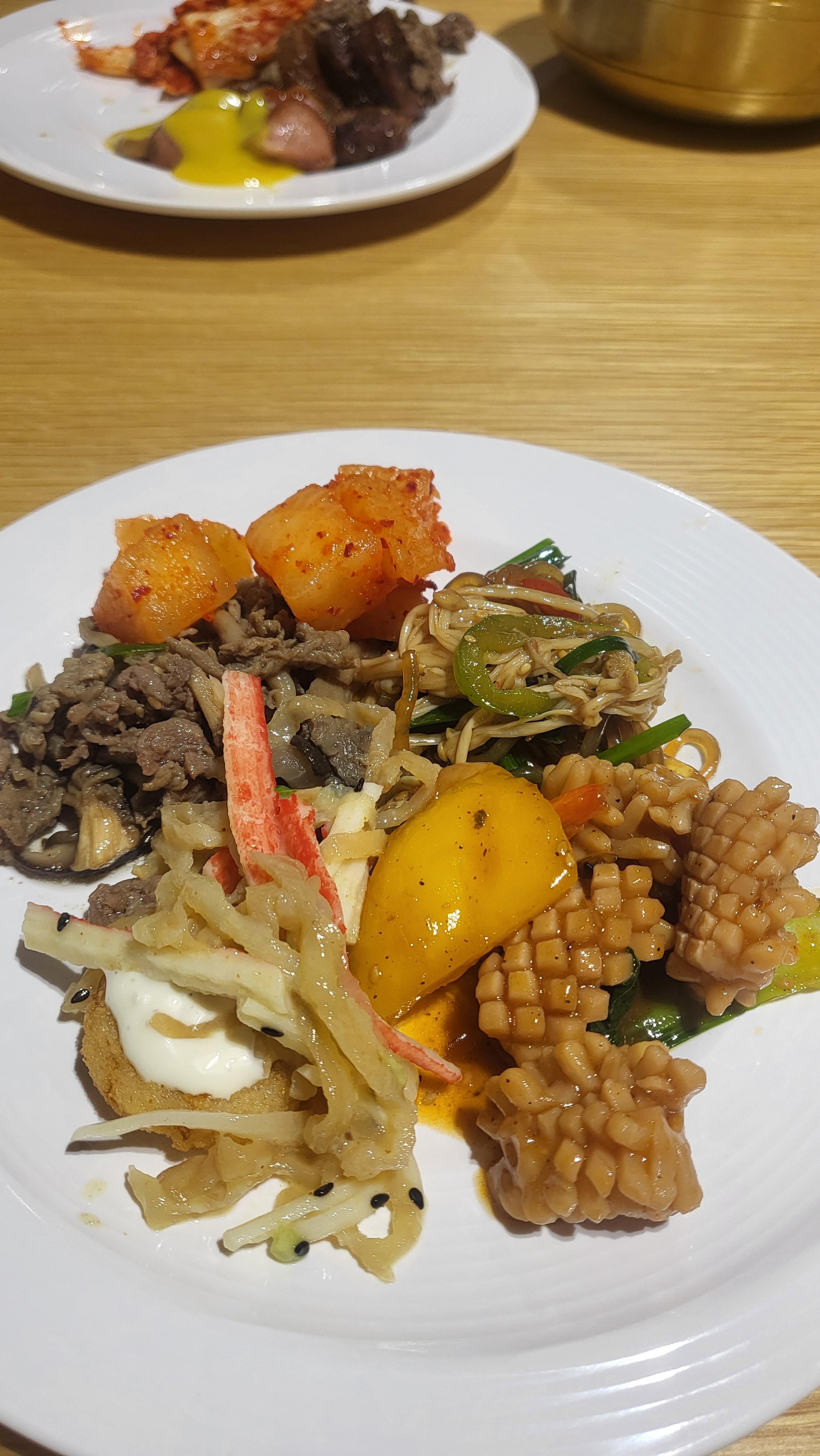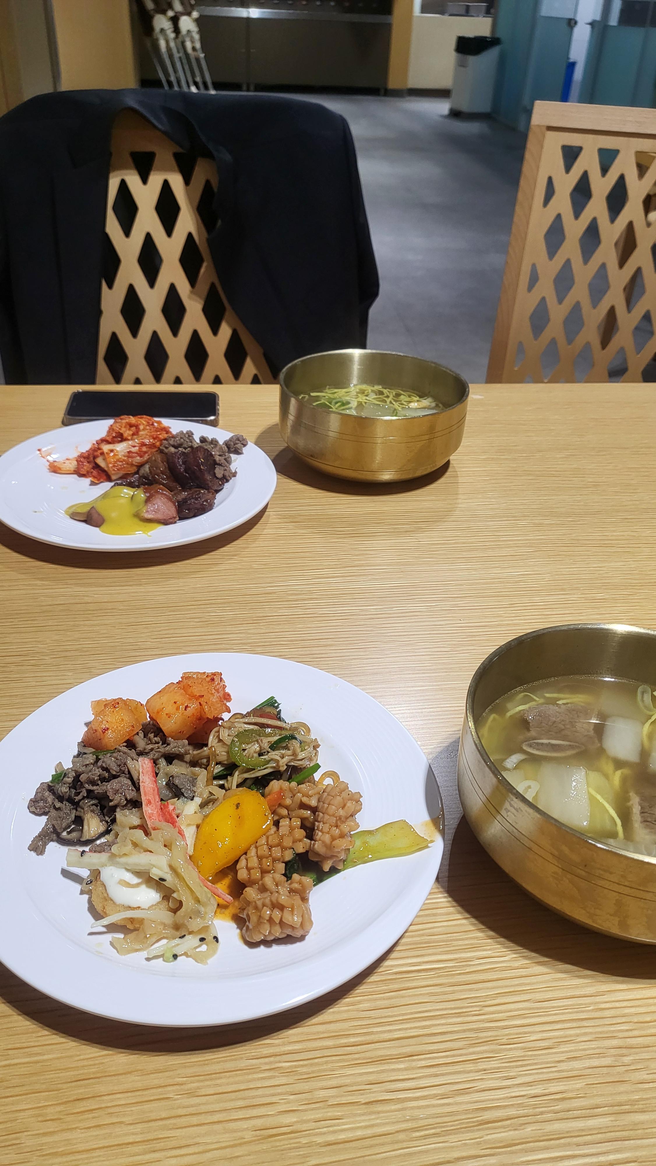 보통 뷔페에서 꼭 준비되는 초밥이나 육회는 없으며, 법원 식당음식에 갈비탕이랑 미니국수정도 추가된느낌입니다. 후식은 떡이랑 과일은 오렌지가 준비되었습니다. 갈비탕 맛은 내 돈 주고는 안 사 먹을 맛입니다.