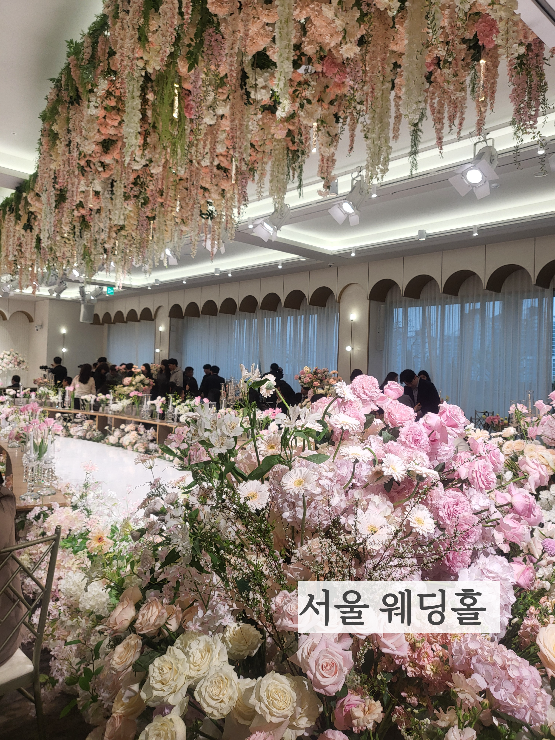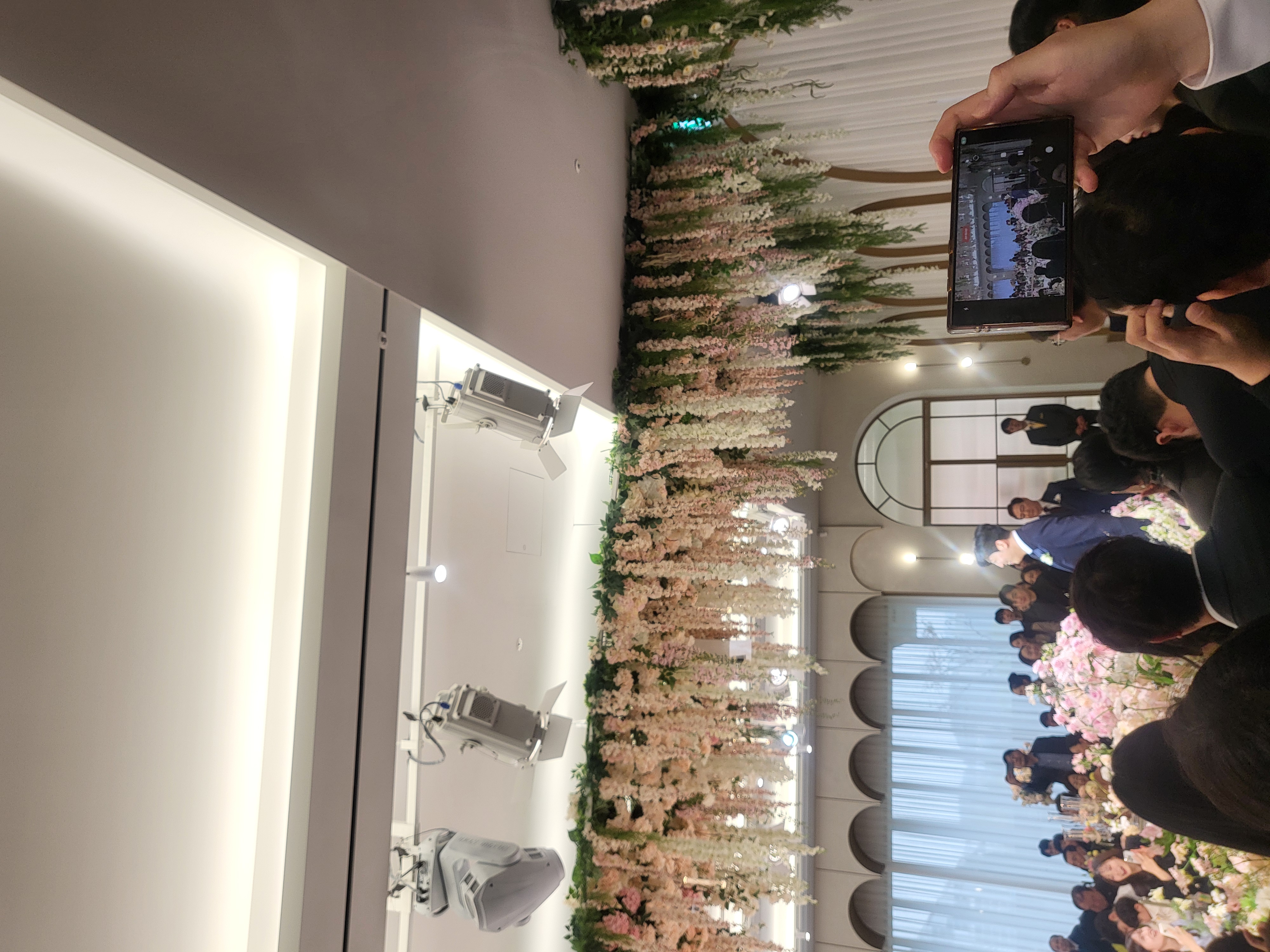 웨딩홀은 신축같아서 물어보니 리모델링을 했고, 리모델링 전 디자인 사진만 보고 계약했다고 한다. 정말 웨딩홀이 예뻤다. 특히 꽃장식이 화려했고 예뻤다.