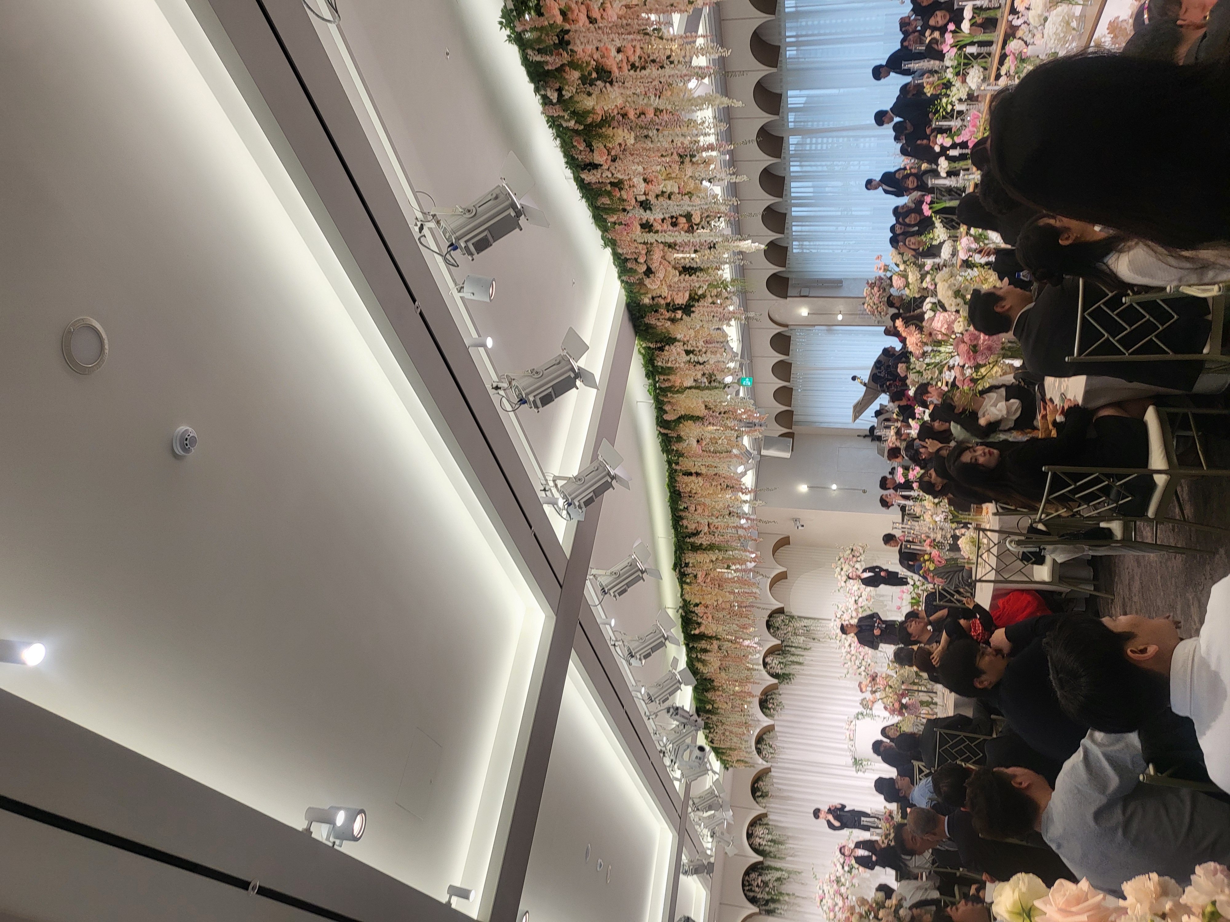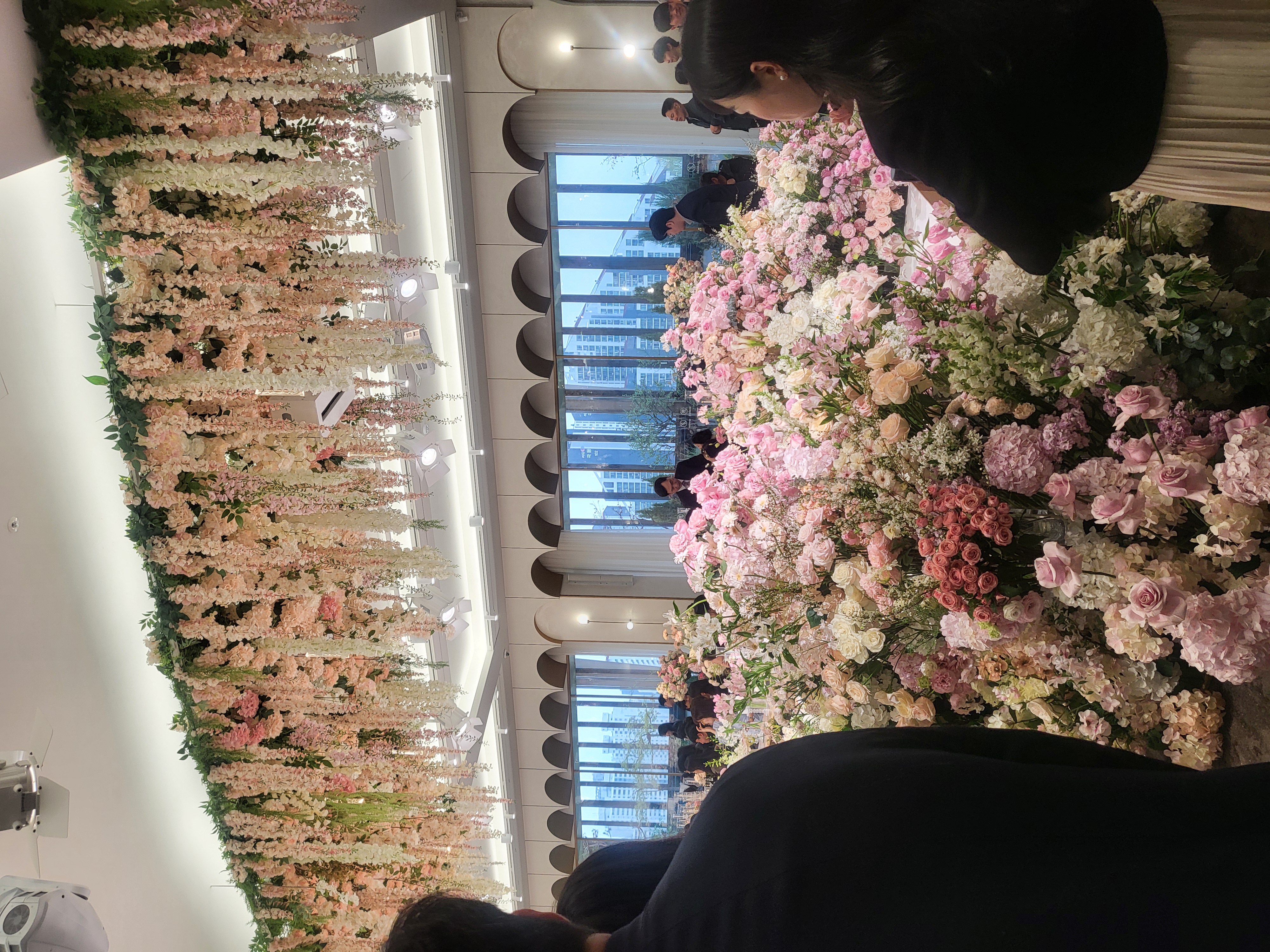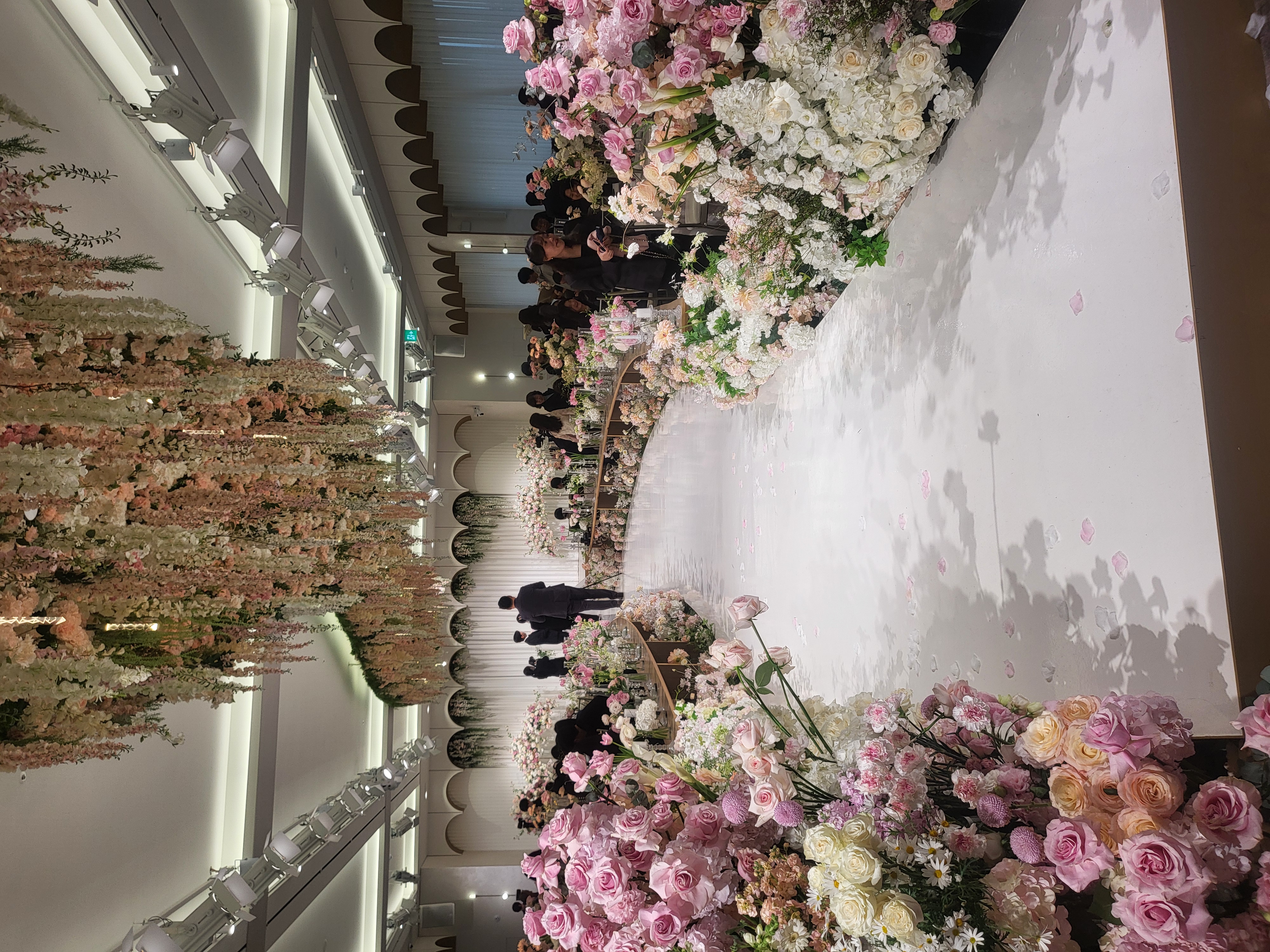 웨딩홀은 신축같아서 물어보니 리모델링을 했고, 리모델링 전 디자인 사진만 보고 계약했다고 한다. 정말 웨딩홀이 예뻤다. 특히 꽃장식이 화려했고 예뻤다.