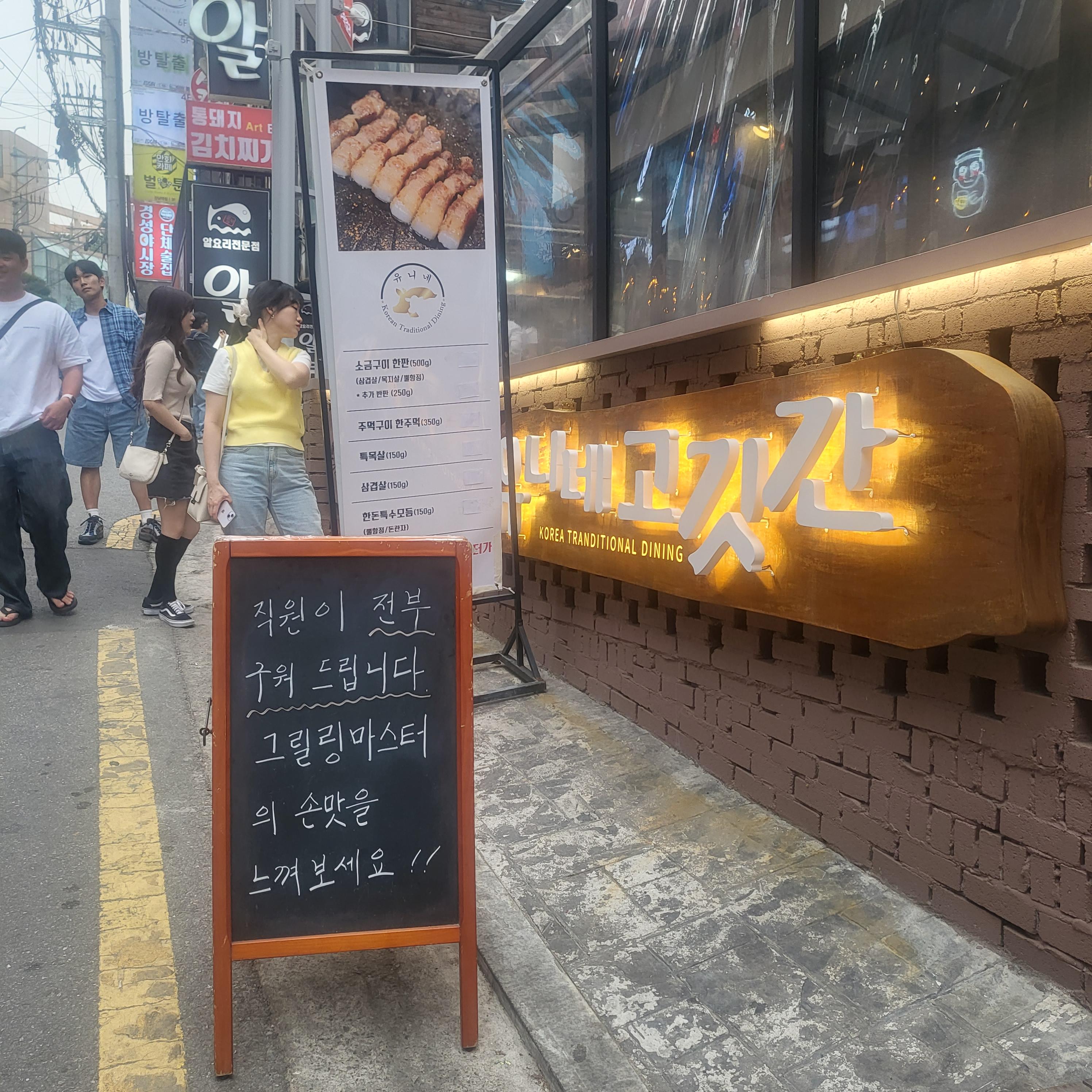 직원이 전부 구워준다는 말에 솔깃해서 갔고, 내가 가장먼저 도착했는데 웨이팅이 있었다. 그래도 맛있어 보여서 기다렸다. 모든 인원이 다 와야지 들여보내준다고 했는데 미리 시키면 먼저 들어와 있어도 된다고 했다.
